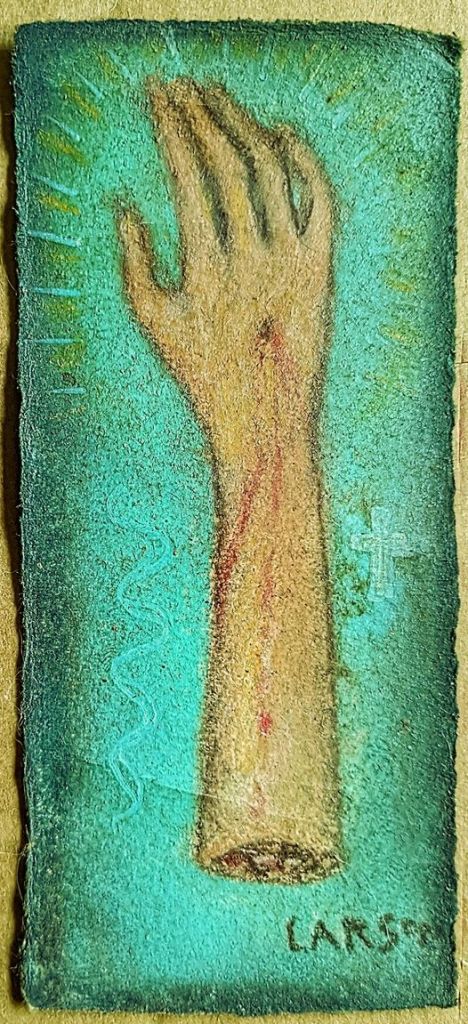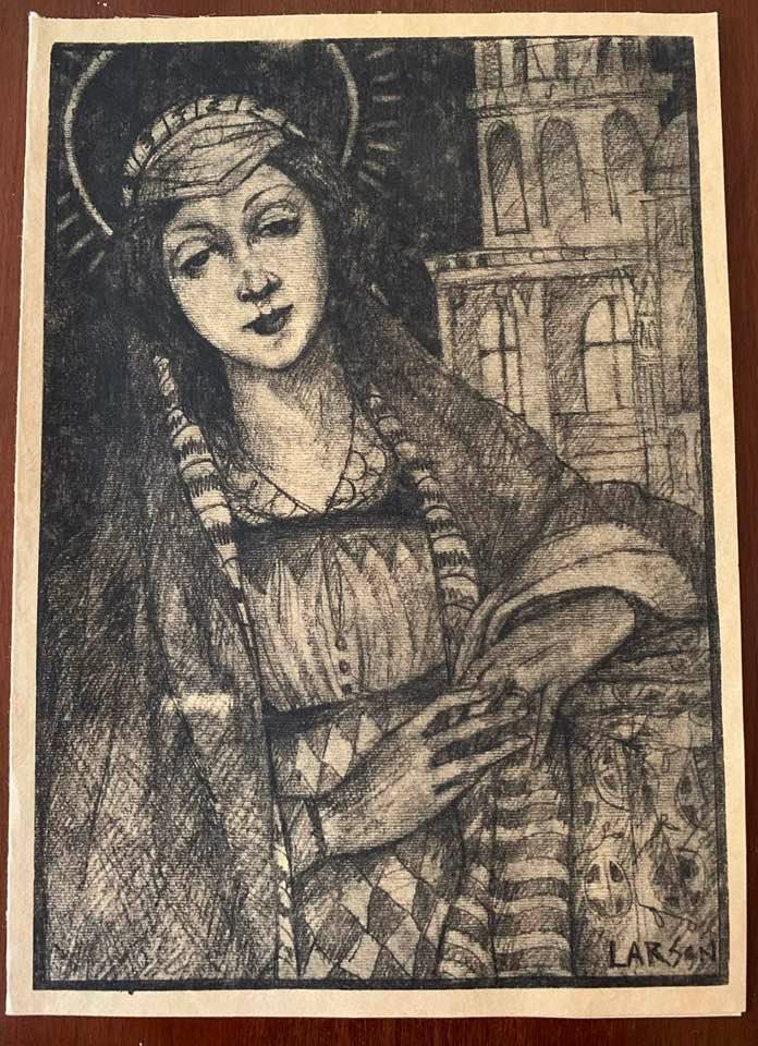 David Larson created a long series called Martyred Saints. He also returned often to religious figures for his expressionistic subjects. If you have one and don’t see it, post it on the David Early Larson FB page or send to JDJ!