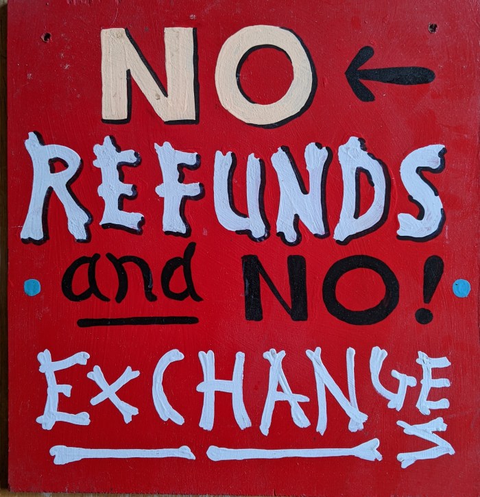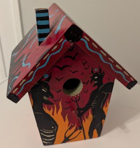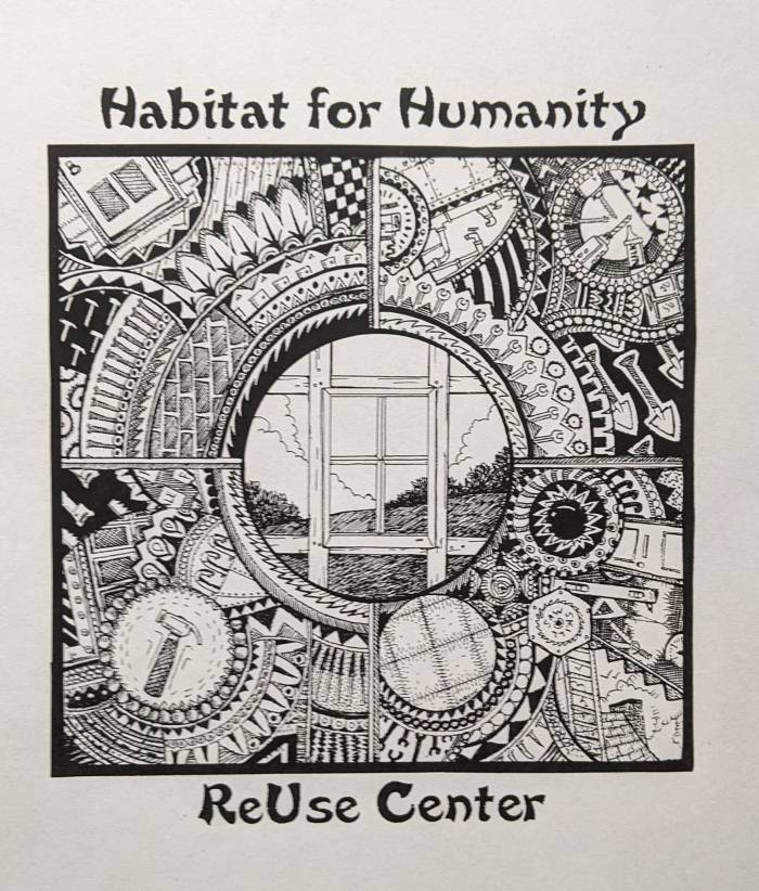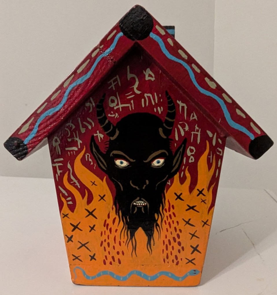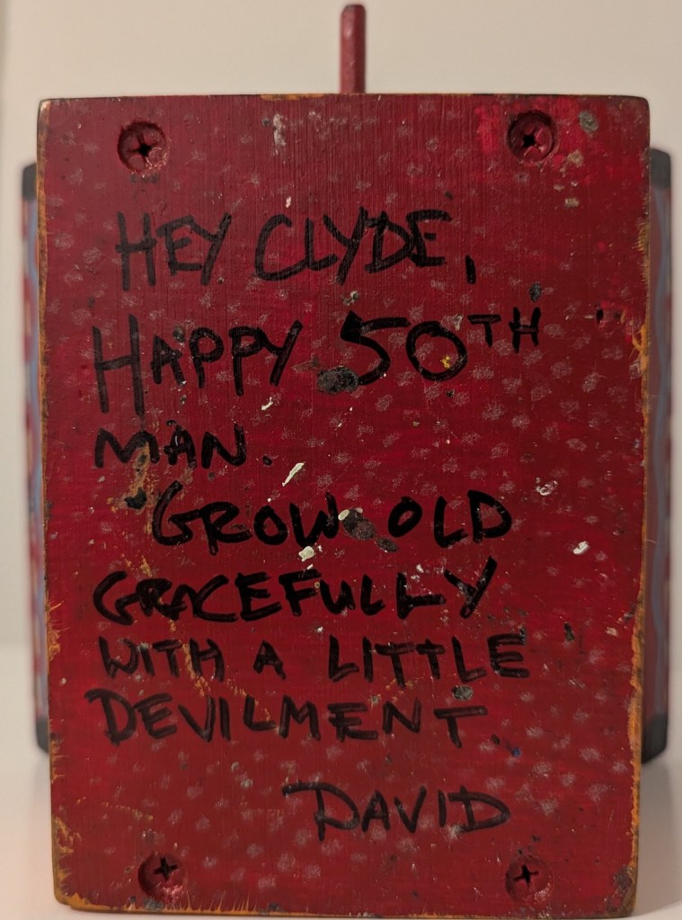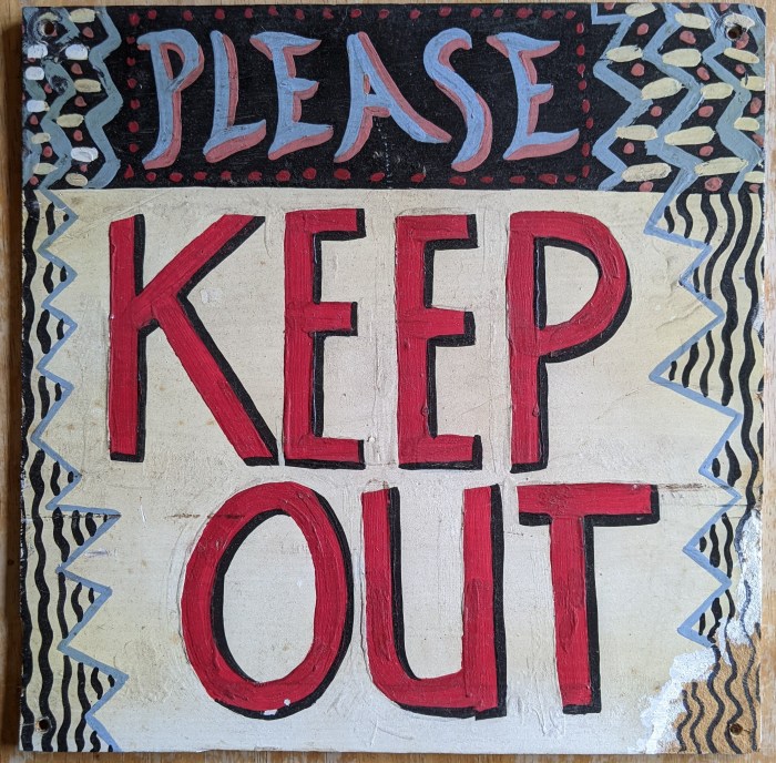 Bill Hickman, a wonderful chef of Rathskellar fame, had David make this. The other signs were made for the Habitat for Humanity Re-Store, where David worked for some years and where he gathered materials for his “Outsider Art.”