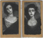 The works include images of Victorian-era beauties with Gibson Girl coifs, madonnas in filmy gowns or vampirish women staring at the viewer with an unsettling hollow-cheeked gaze.