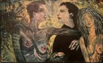 In the article above, Max acknowledges “some grumbling about his failure to move beyond the world of Count Dracula” but notes the strong defense from David’s admirers and sees him “edging toward a wider range.” Agreement to Abuse,” the painting shown in the article, is described as having ” a painterly environment which makes a broad and powerful statement.”