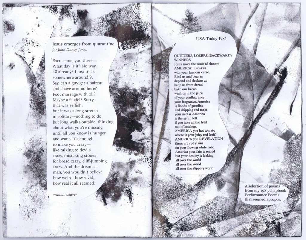 You may recall that Mary’s booklet, reproduced and stapled into the middle of the zine, was featured, along with the Anna Weaver poem below, in a post here. (full size scans).