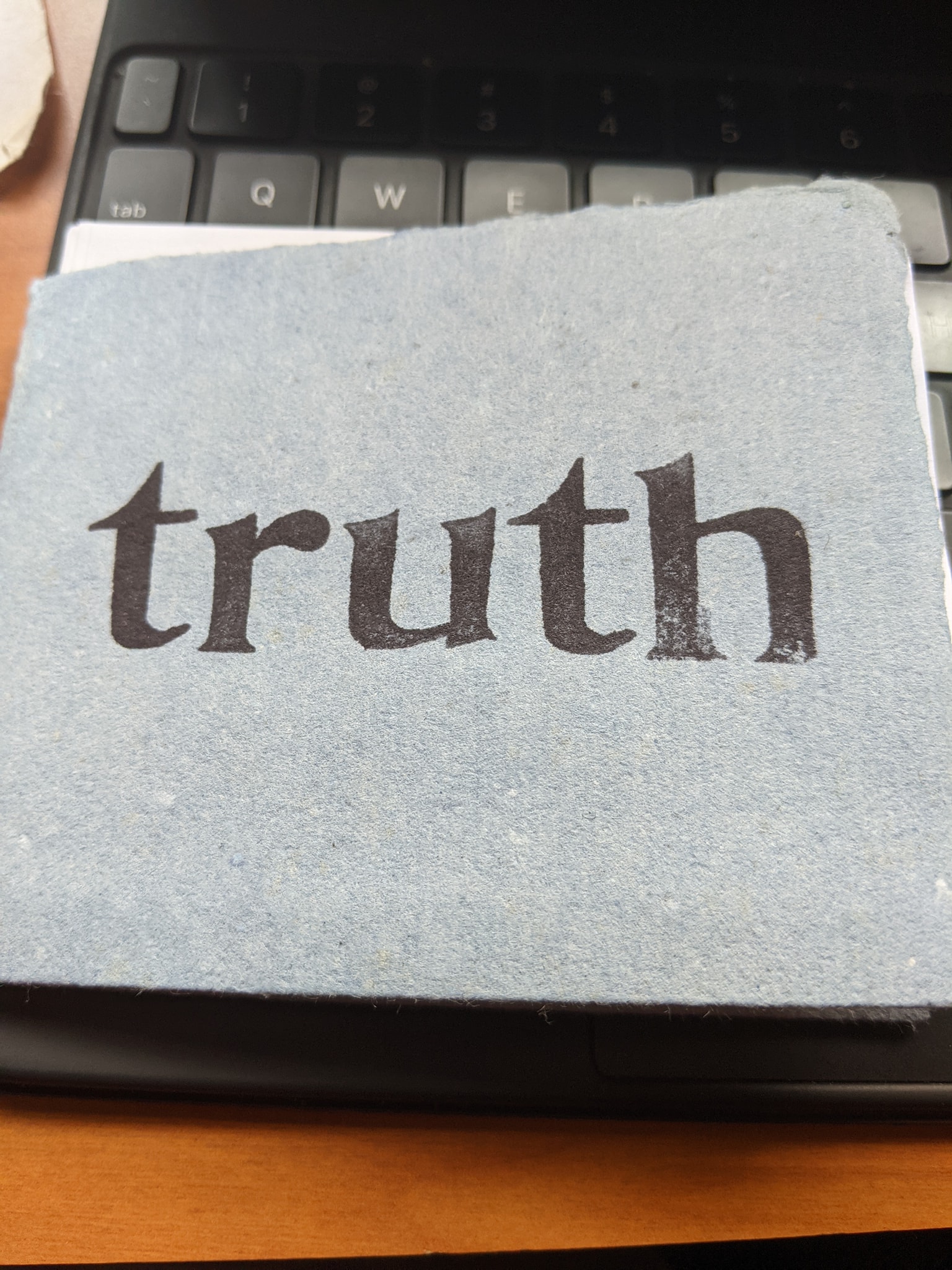 The closing image is from Andrew Lane, a zine artist whose work I first encountered through the 2020 Asheville Zine Fest exchange. I picked up his sticker at the Boone Bound book arts festival and put it right in front of my work station. So sad that Reagan, Newt Gingrich, and the bubbling forces of social media have brought truth into such peril.