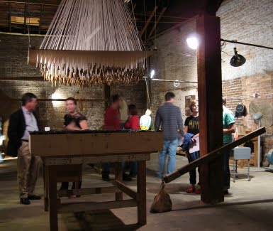 MUSA is a “post-industrial art exhibit” whose content will relate more or less directly to the venue: a dormant furniture factory across from Humble Pie in downtown Raleigh. An art show in this space really resonates for me, because I have such fond memories of the crucial employment and quirky stories that arose from my artist friends’ work there in the 1980s. The owners made annual trips to Asia for antiques and prints, but the majority of the stock was furniture that was “aged” – whipped with chains and other abuse, or modified otherwise – before wholesaling to Neiman Marcus. Bill and Otho were enlightened and tolerant employers to several good friends, and I’ve always appreciated it.