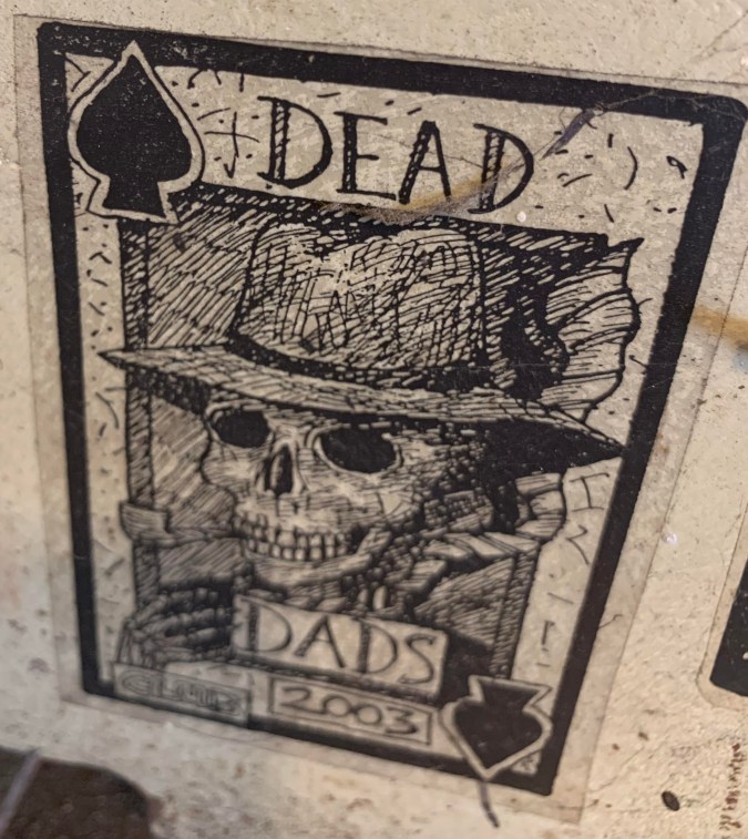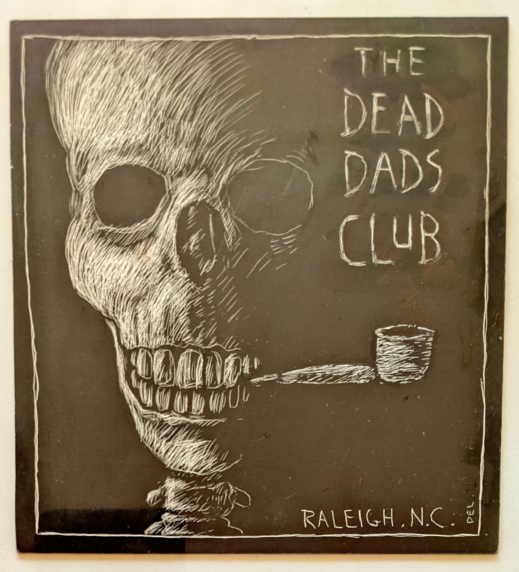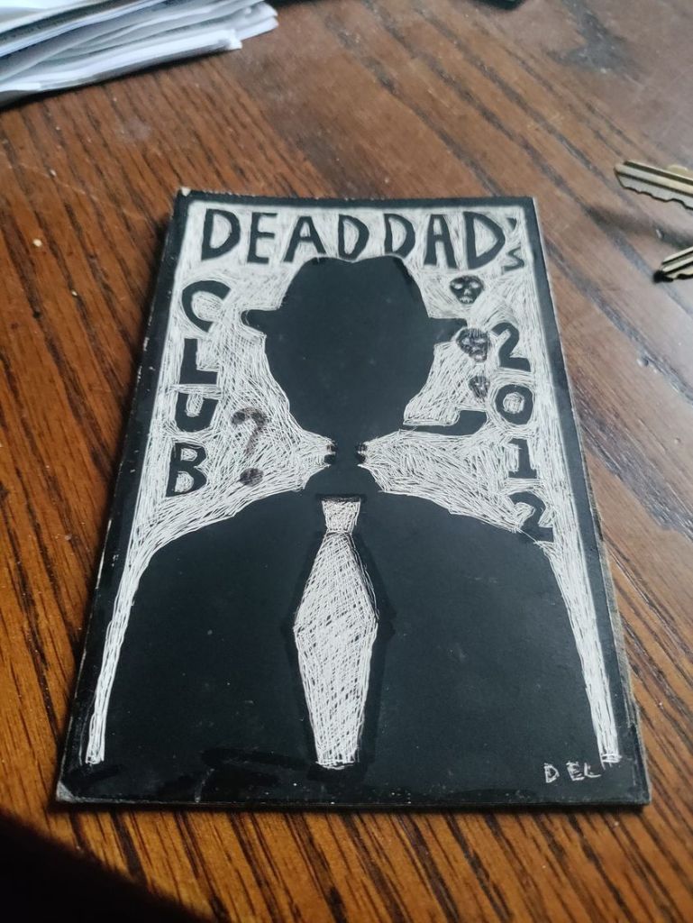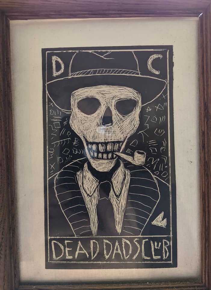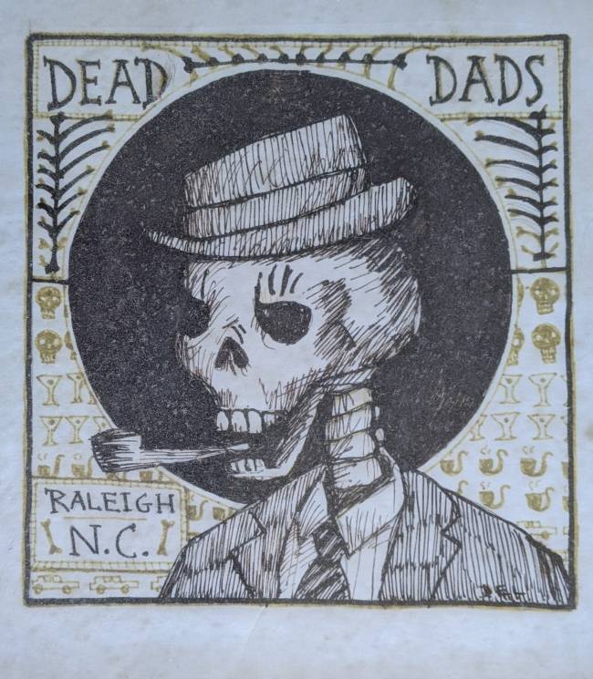 The Dead Dad’s Club was invented by Karl Larson. David went through training and qualified to make videos for broadcast on Channel 10, Raleigh’s public access station. His video starring Karl and others about the club was banned from broadcast for lewdness ( the urination of Peter E off camera during the filming) but represents an excellent history of the event. Alan B posted the video here.