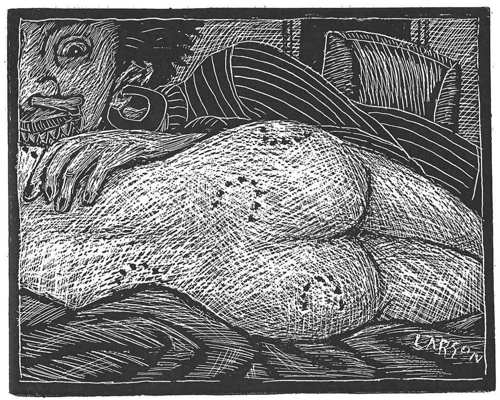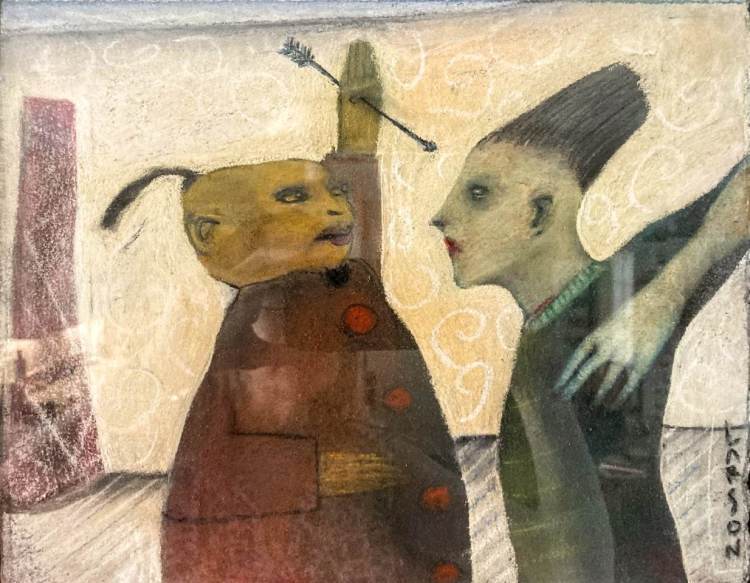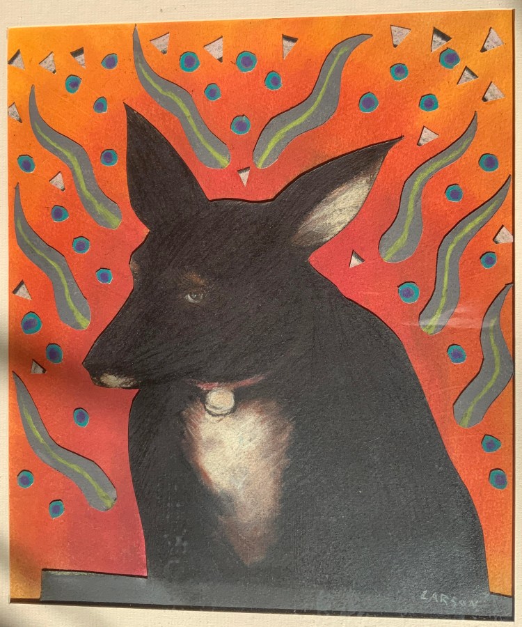 David Larson survived Karl and his brother Steve, but not by much and now Phil Larson is left with the loss of all three brothers in a few short years. Steve’s dog Dup was a favorite subject for David, and below are some images contributed by some of the many people who have shared their art on these posts. Thanks to all, and love you some DEL!