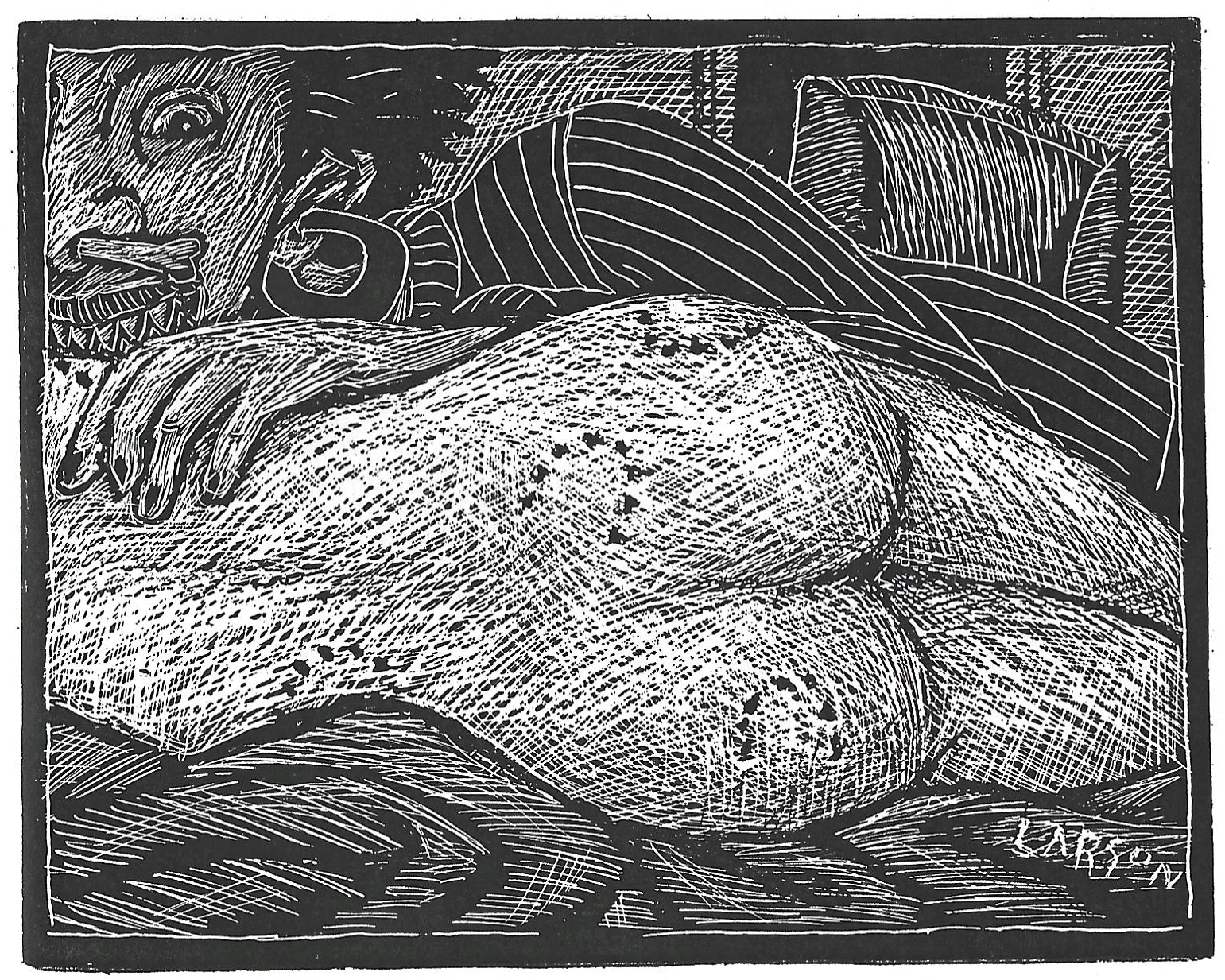 Larson’s work for Russell Boone’s Seed company is archived at Alternating Crimes.
