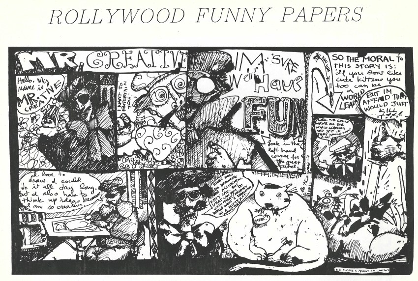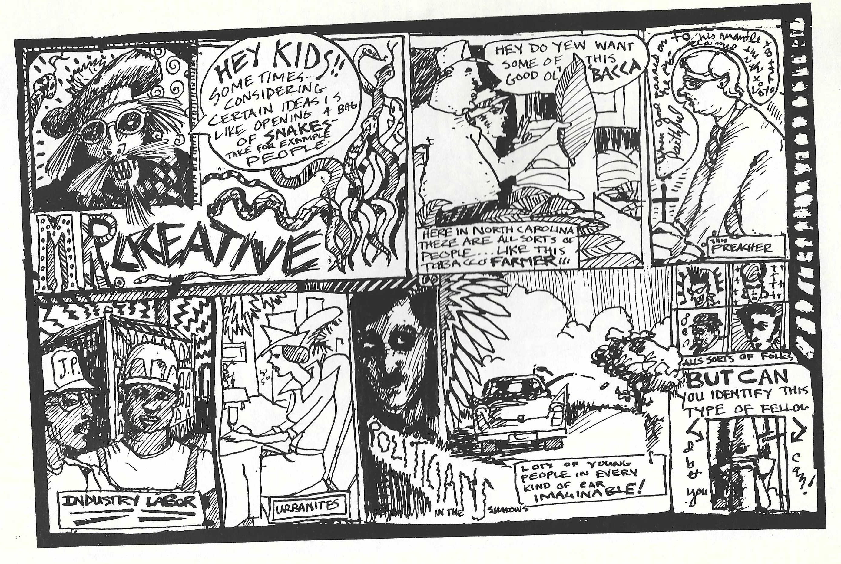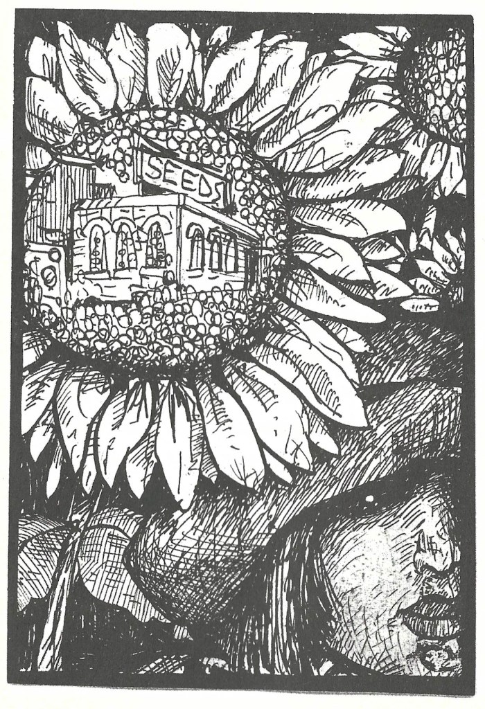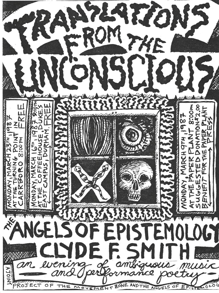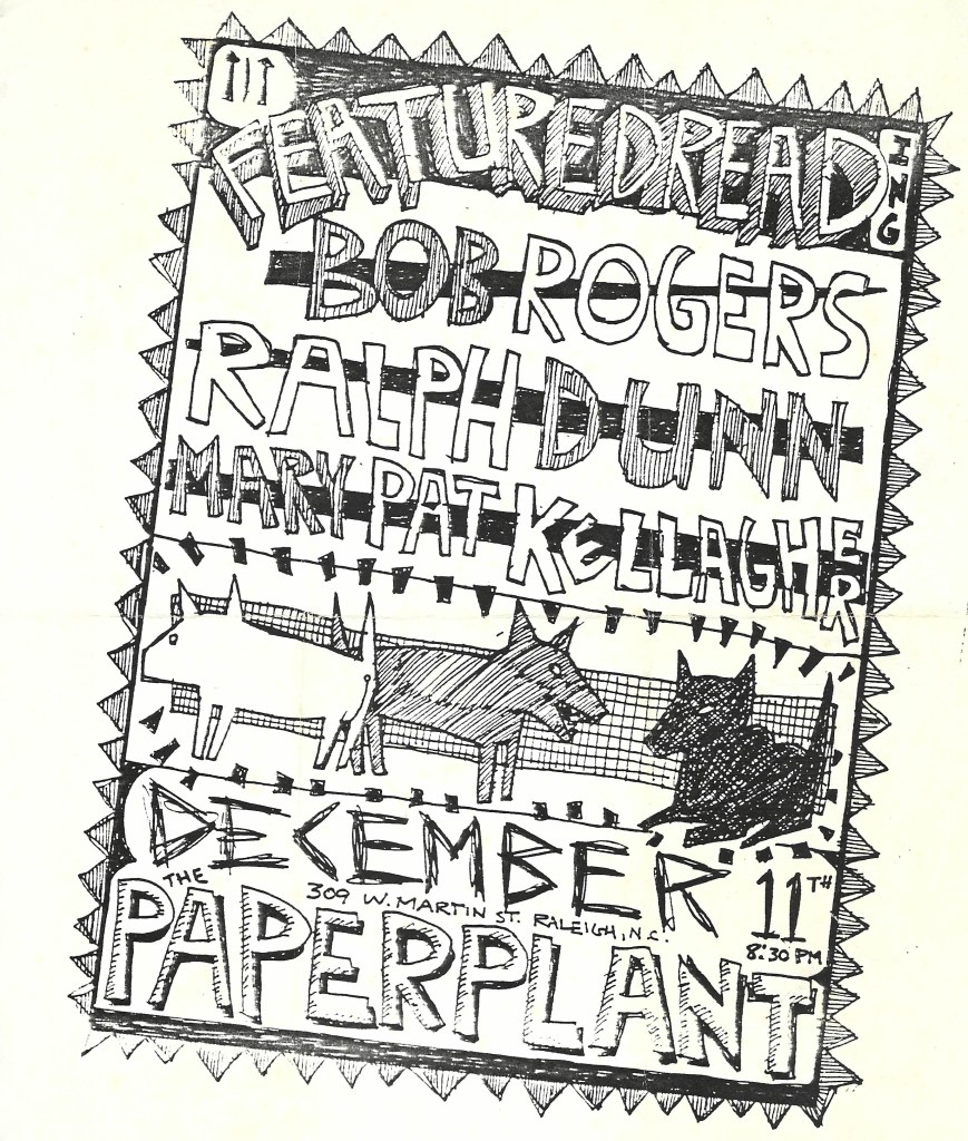 David illustrated several of The Paper Plant’s chapbooks, as well as for Peloria Press (Jim Shell and David Kelly) and the recently published book The Orphan by Dave Wilson. He was a major artist for Scream, the most important creative magazine of its day in Raleigh. His covers inaugurated zines by both Margaret and Lee Johnson. His band poster work led into fertile ground as the “Mr Creative” of the Rollywood Funny Papers. His pastels graced the covers of the seed catalogs published by the late Russell Boone, publisher of Scream. Any publisher or writer was thrilled to be blessed by his work.