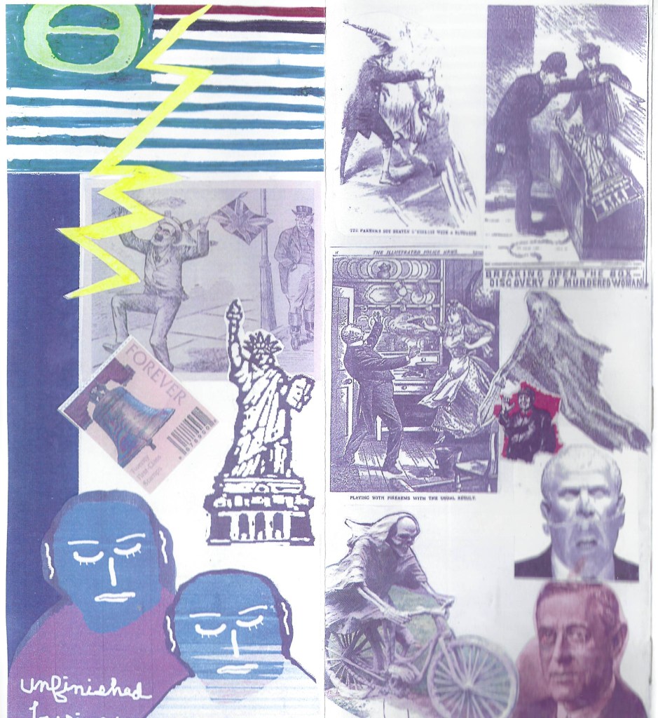 My latest and biggest ever mail art is out in the world in an edition of 120! Based on an early form of street literature I learned about from Dr. Charles Edge at UNC-CH in the early 70’s. I previously used the format in a self-publishing project with 6th graders at Glenwood Elementary my final year in Chapel Hill. Sent one year from an inauguration that will be a watershed for our country – one way or the other.