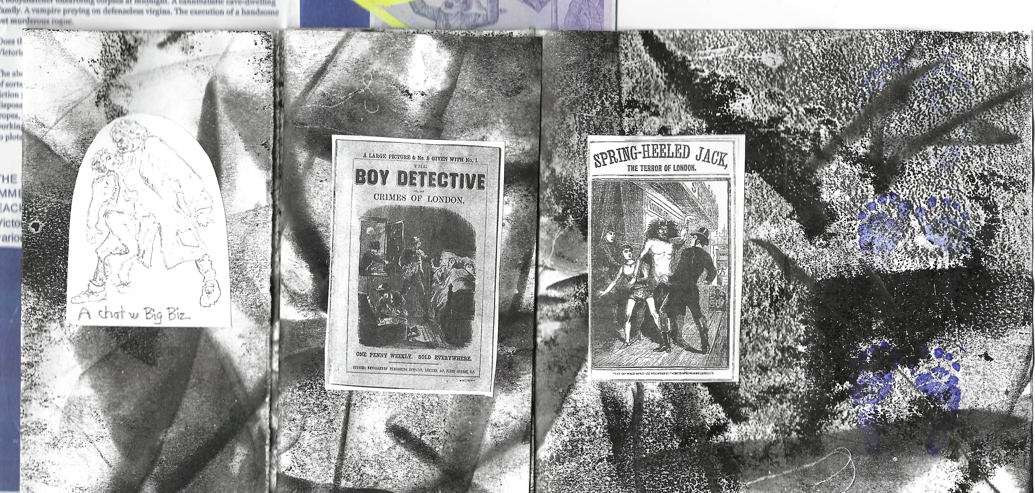 Historic images of Penny Dreadful covers and other historical print images (occasionally modified) were cut out and glued into the booklet. Over 3000 pieces! Not all are shown.