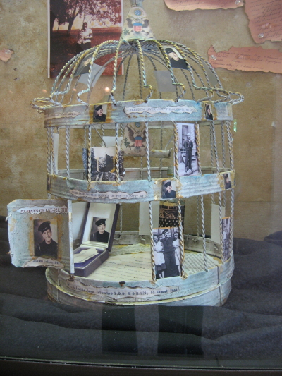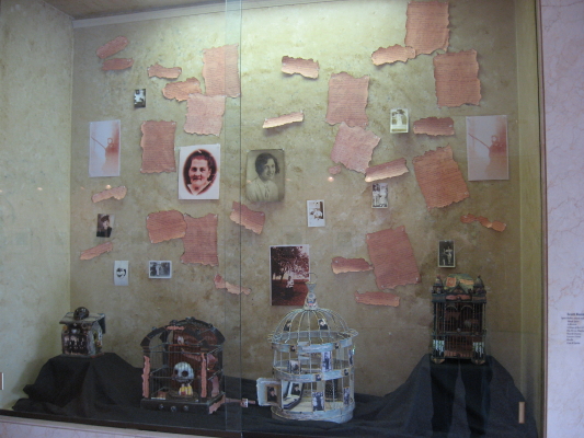 The Block Gallery show also includes hand-tinted gelatin photographic prints by Alison Overton and an installation of assemblages by Scott Renk. Renk’s work, which is in the display cases on the second floor of the space, consists of highly personalized, realistic historical artifacts given iconic status by their inclusion in the quaint yet ironic structures created by the artist. At the reception, Scott confided that a viewer sidled up to him and asked “Have you seen the voo-doo houses?’ whereupon he informed her that he, in fact, had made them. Reminiscent of the eery feelings of injection into a past created by the Titanic show at the NC Museum of Natural Sciences, these windows back into time are worth a look. My snapshots are below (with thanks again to Mary Kay Kennedy for the pristine images above).