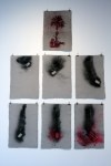 Rebus Works has a strong political show which includes pillow portraits of Sarah Palin and stunning pieces of hand-laid paper. Below is a description of those pieces. I have to mention that Cara and I used garments from old romances ( as well as objects old, new, borrowed and blue) to make the pulp for our wedding invitations. Combat Paper is a much more profound use of the idea, but the idea is not new. Having that perspective made the work all the more powerful for me.
