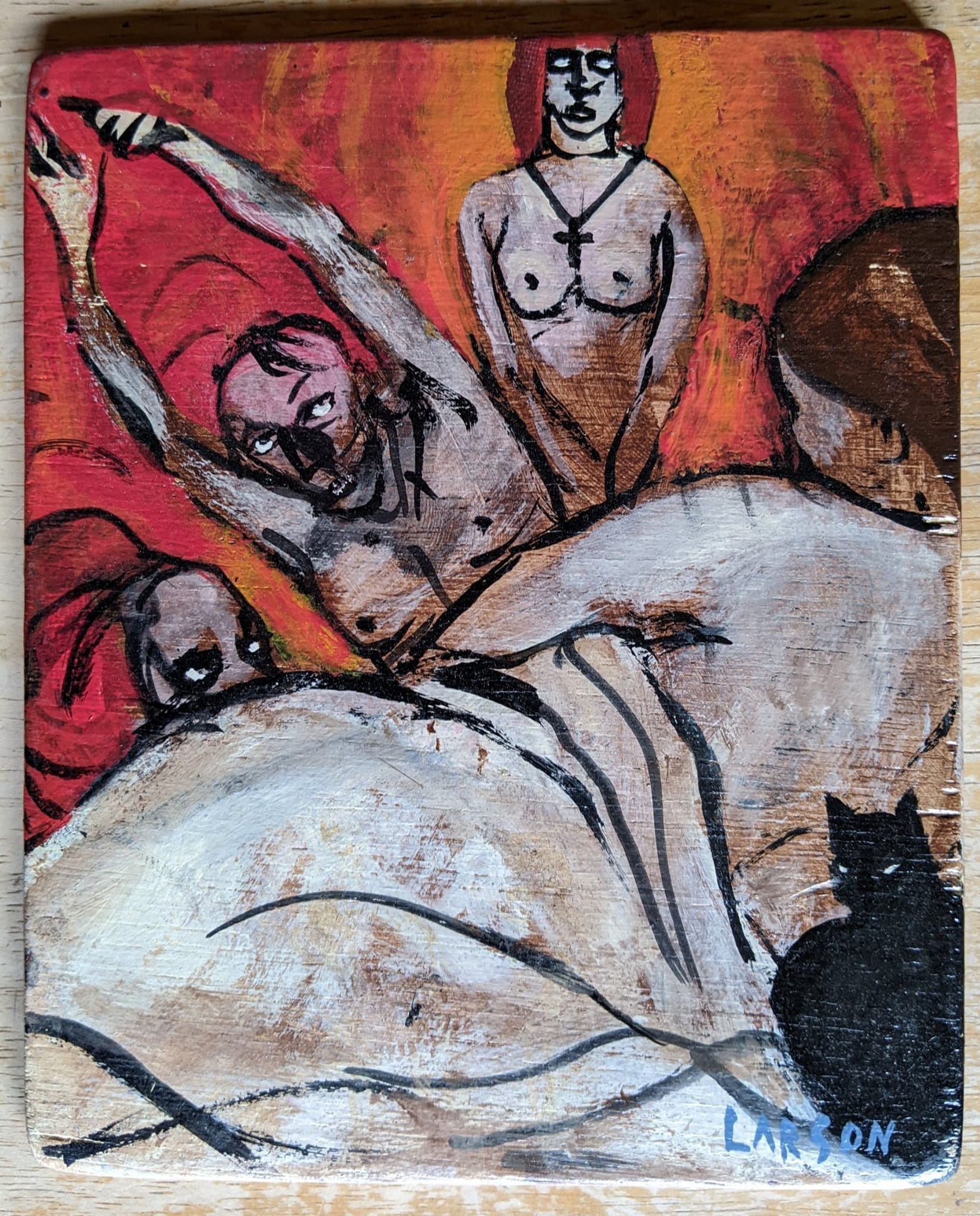 David Larson created a long series called Martyred Saints. He also returned often to religious figures for his expressionistic subjects. If you have one and don’t see it, post it on the David Early Larson FB page or send to JDJ!