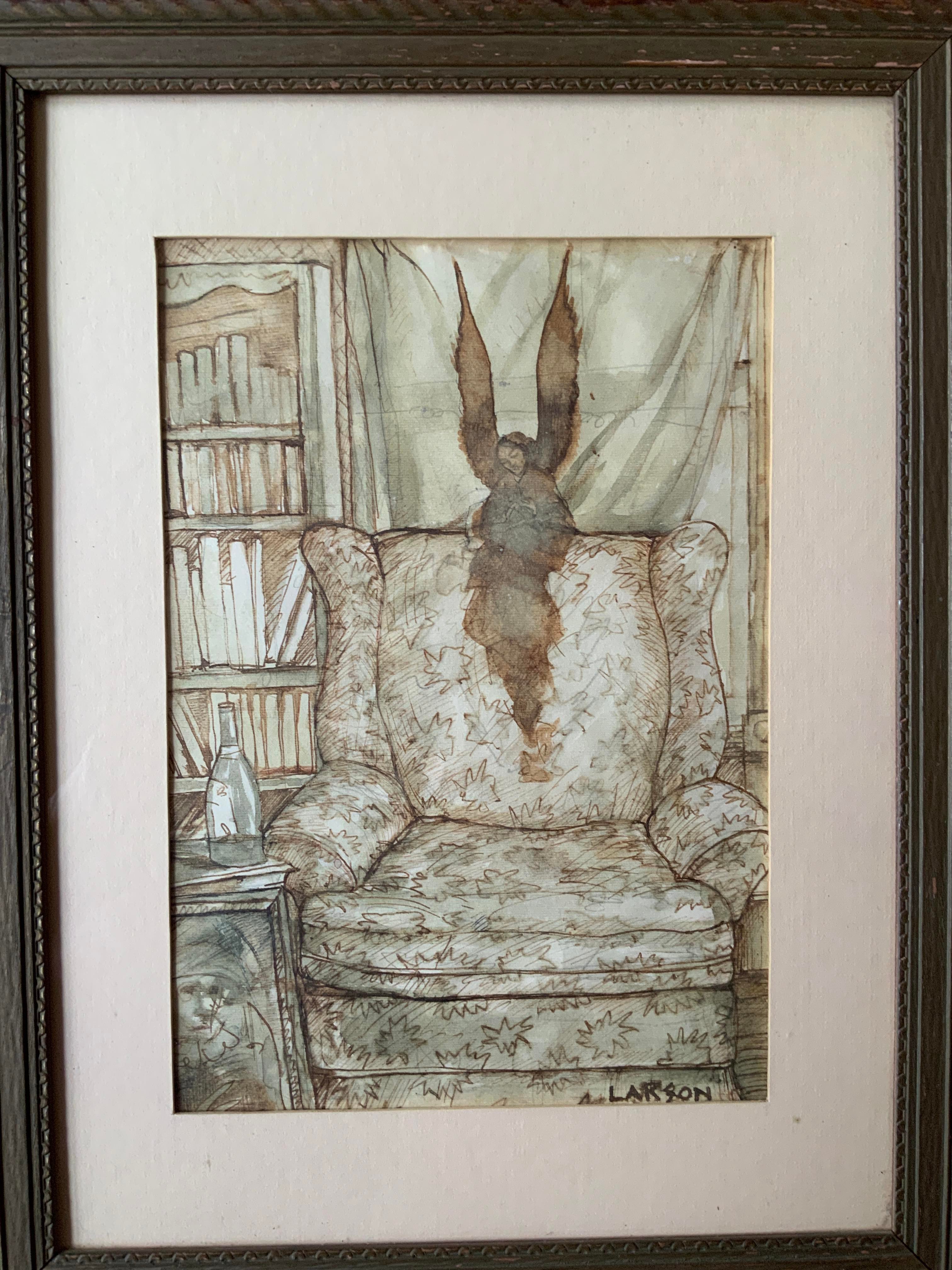 David Larson survived Karl and his brother Steve, but not by much and now Phil Larson is left with the loss of all three brothers in a few short years. Steve’s dog Dup was a favorite subject for David, and below are some images contributed by some of the many people who have shared their art on these posts. Thanks to all, and love you some DEL!