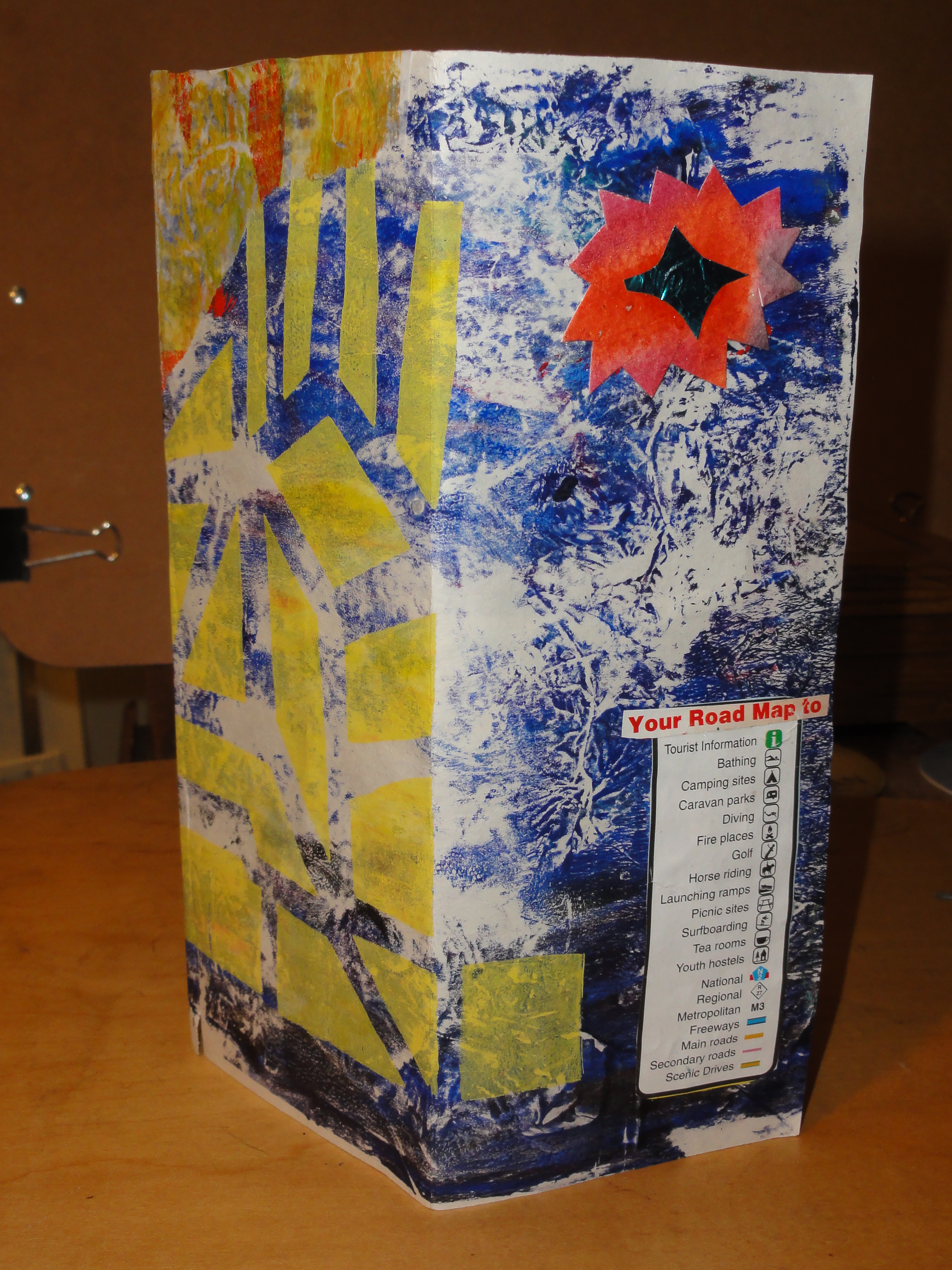 My latest and biggest ever mail art is out in the world in an edition of 120! Based on an early form of street literature I learned about from Dr. Charles Edge at UNC-CH in the early 70’s. I previously used the format in a self-publishing project with 6th graders at Glenwood Elementary my final year in Chapel Hill. Sent one year from an inauguration that will be a watershed for our country – one way or the other.