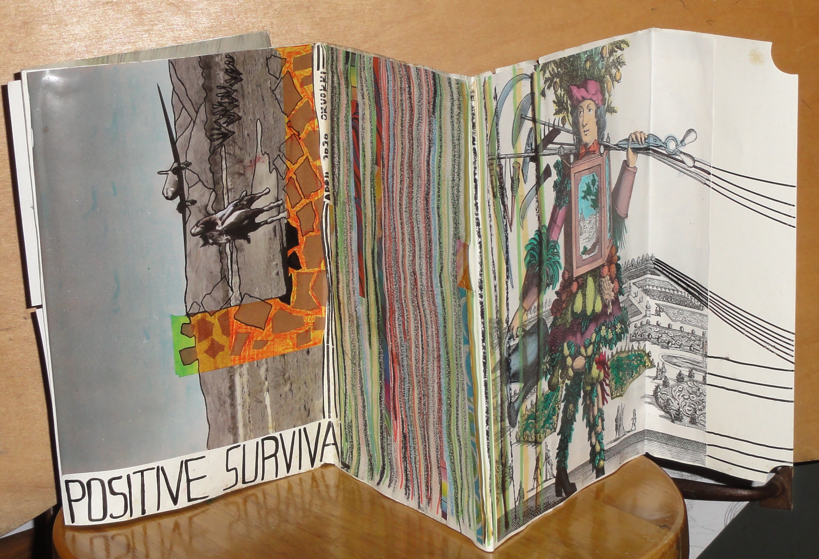 The format is a 2-sided color photocopy enclosing a small booklet made of an 11×17 sheet strategically used to clean off excess ink from the platen after letterpress printing nature book covers. I also used these for the zine version of my pandemic mail art piece, Plague Daze.
