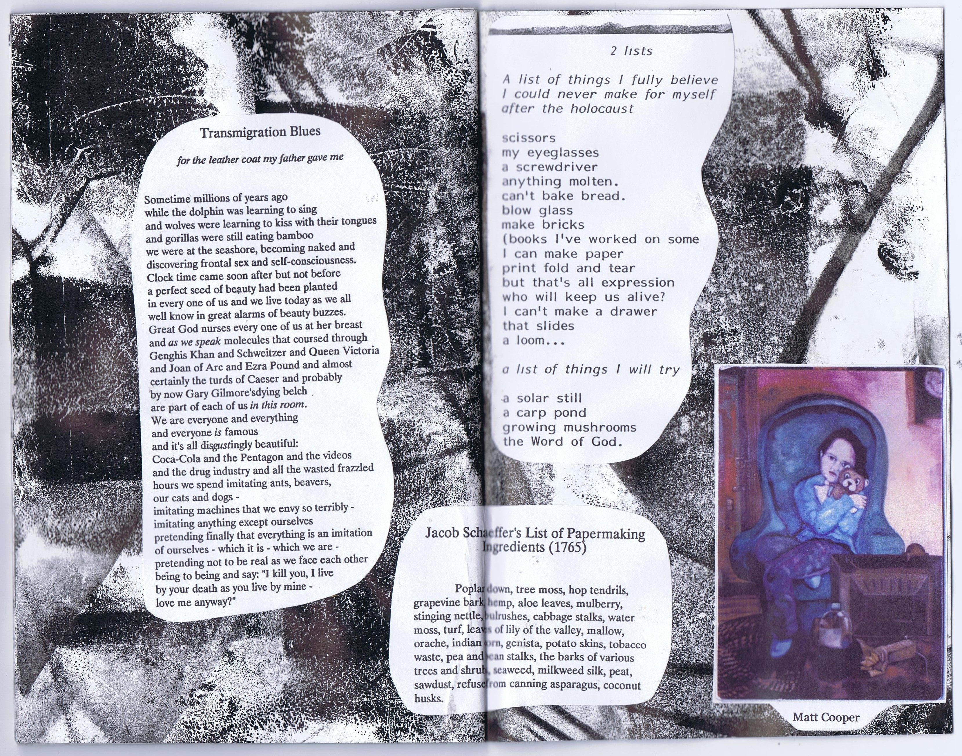 You may recall that Mary’s booklet, reproduced and stapled into the middle of the zine, was featured, along with the Anna Weaver poem below, in a post here. (full size scans).