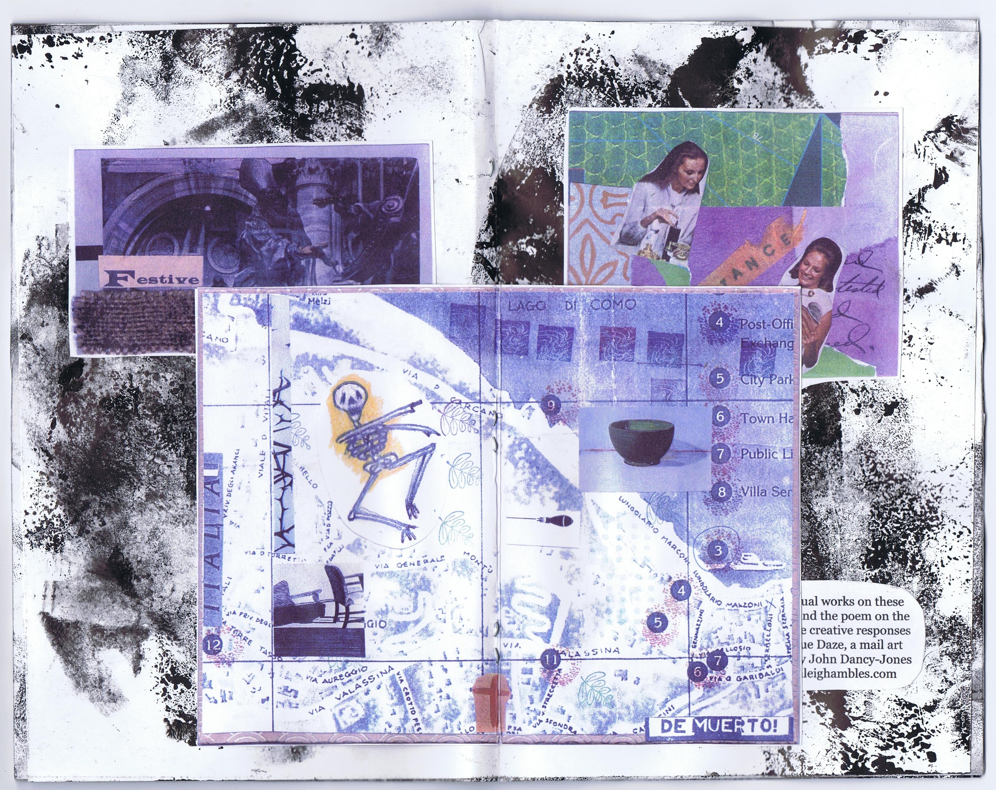 The show of assemblages included over a dozen works, some designed for individual people and a few general ones. Like the final booklet I just mailed, the project was dedicated to Clyde Smith, who took me to that life-changing Ray Johnson show, and Richard C, the curator of that show, who became a friend and correspondent who still sends me his wry and quirky postcards.