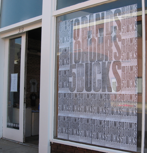 The Bain Project artists and supporters put together a huge bash on Martin Street and raised awareness of and funds for this fascinating and rapidly developing project. Ten artists, joined by three documenters, are transforming an abandoned historic Art Decco structure on South Wilmington, and making some great individual art along the way. Many of the individual responses were on display Saturday at 313 West Martin Street, a space provided by Clearscapes. The transformation of the 1940 water treatment plant will be on display the middle two weekends in May.