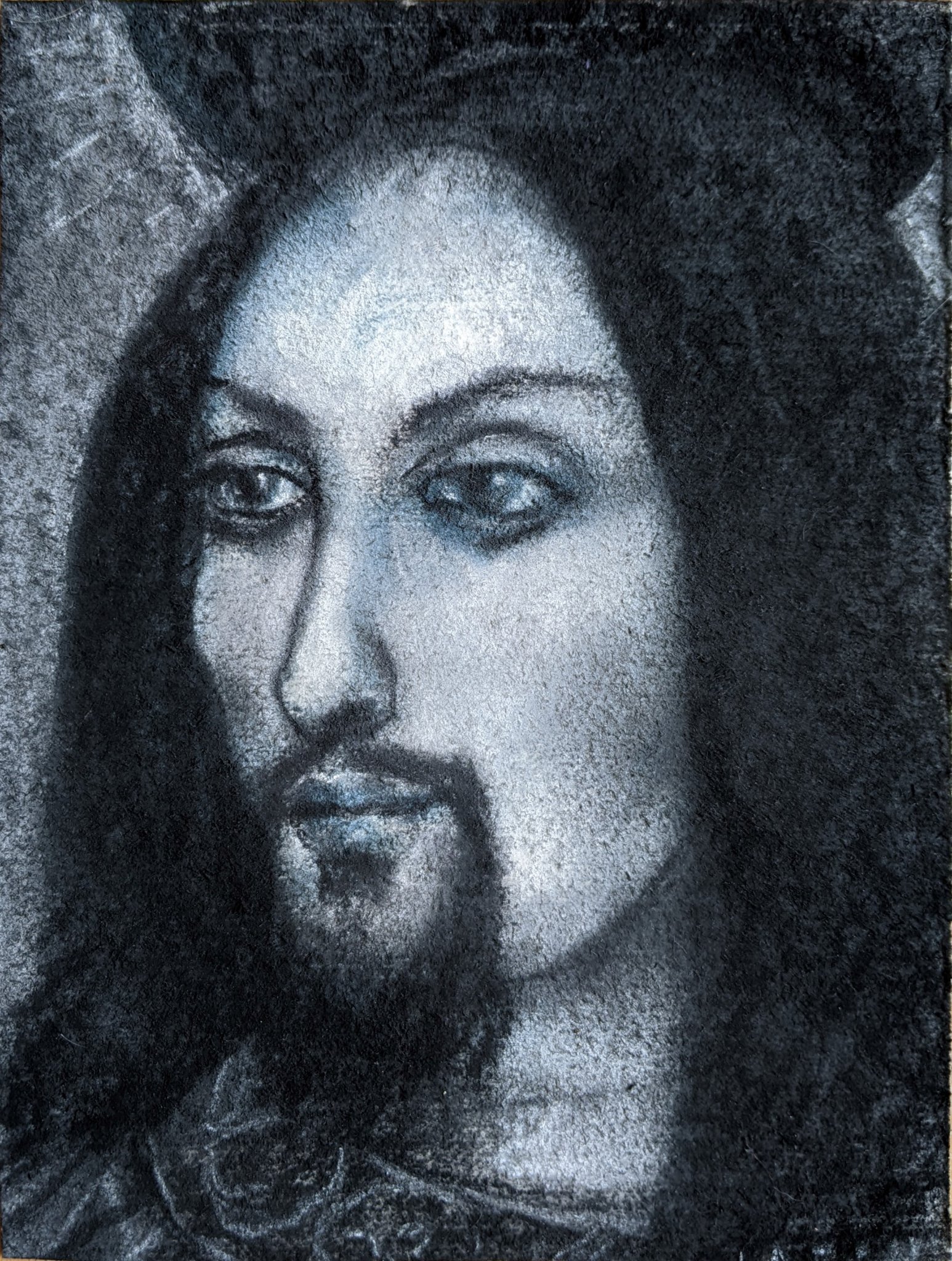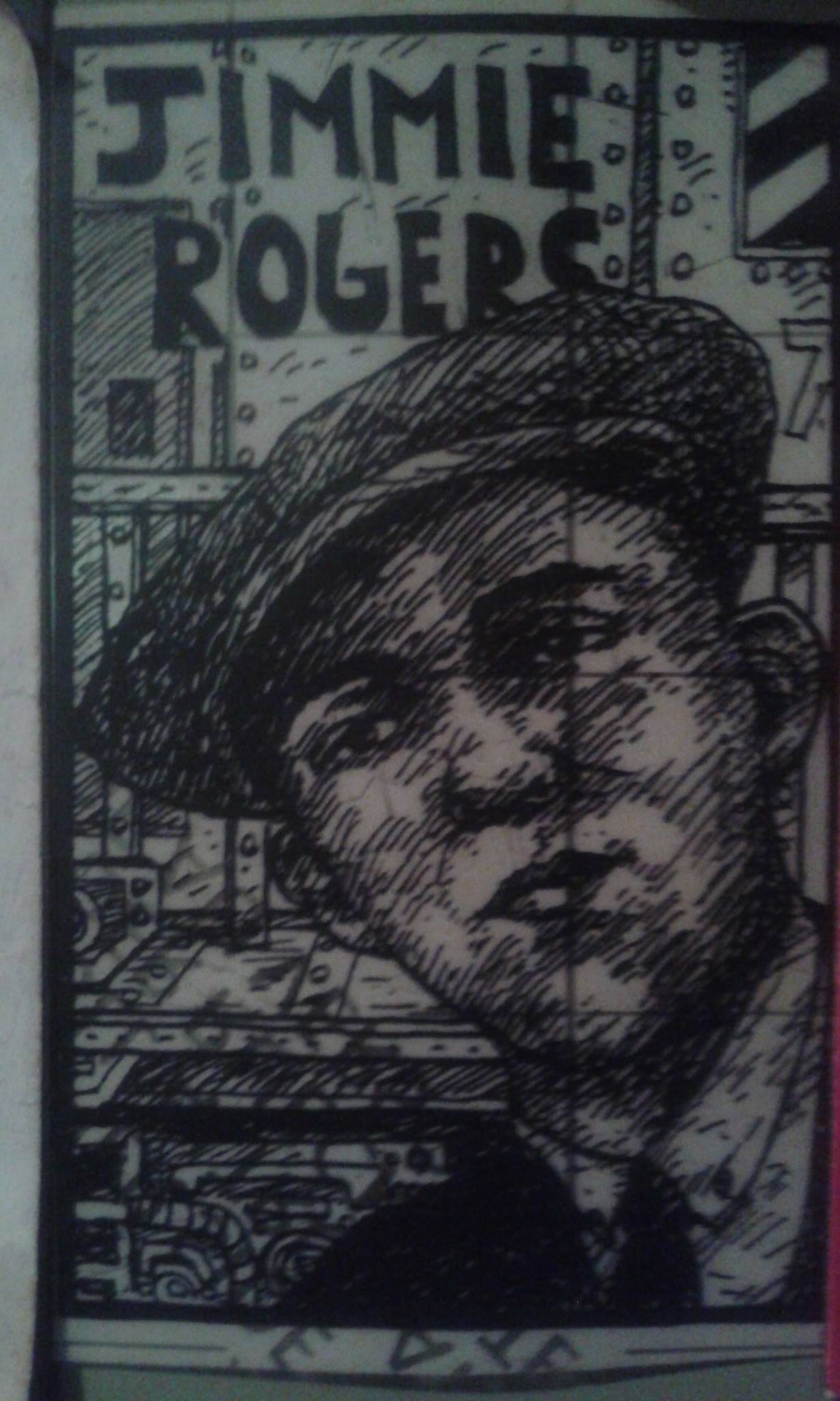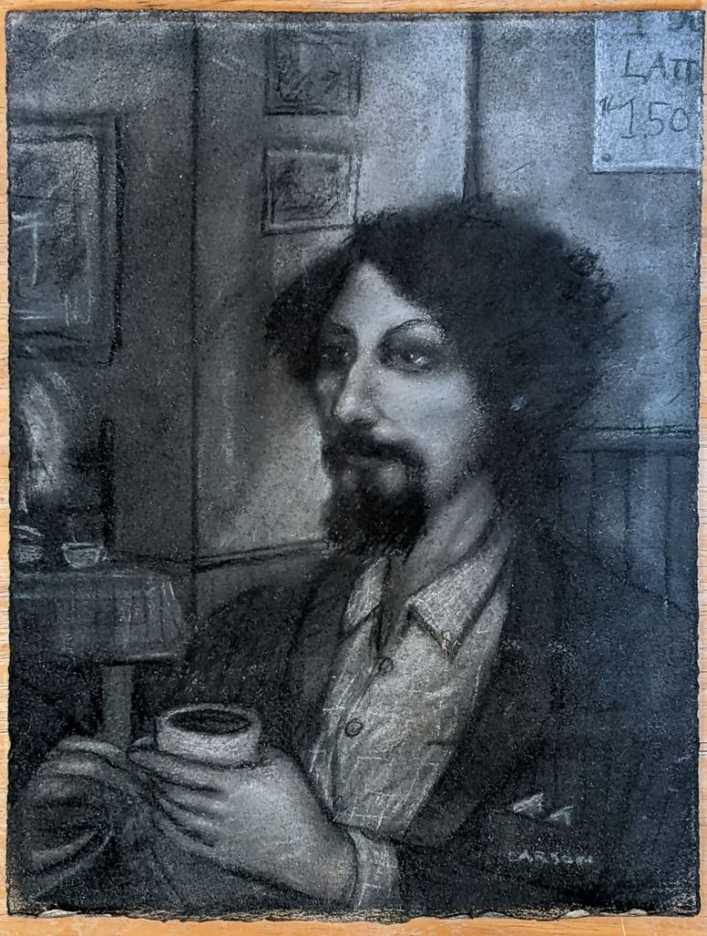 Posada finalPortrait of Jose Guadalupe Posada, Mexican political illustrator who used lithography to produce his works. A favorite of David’s, using skulls and skeletons in his figures, he influenced his Day Of The Dead pieces. Transparency and detailed image for the 2000 calendar.